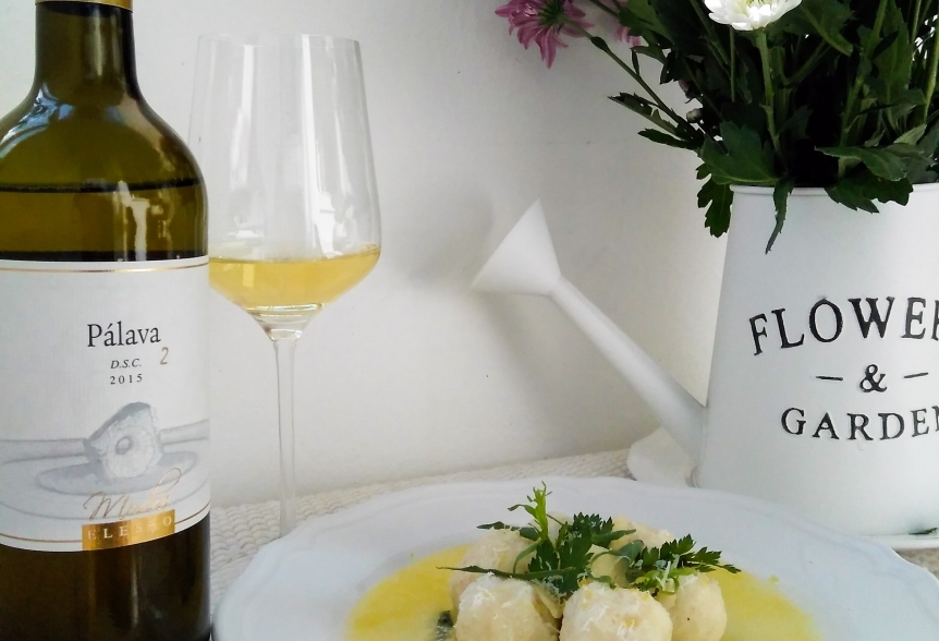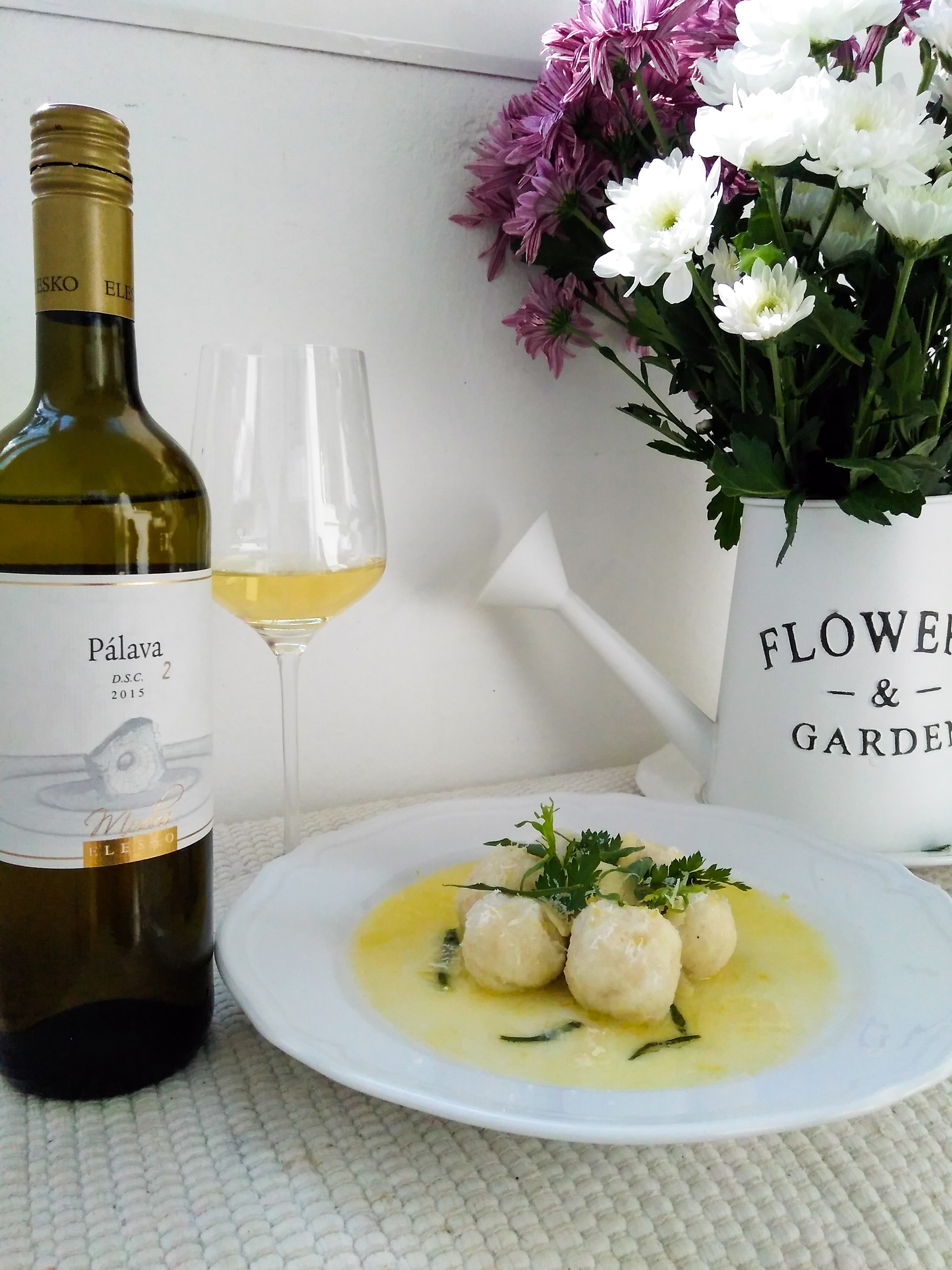 →Ricottové guličky, parmezán, muškátový orech, omáčka z masla s medom, estragónom, citrónovou kôrou. Pridať už len kvapku skvelej ELESKO Pálavy do jedla i do pohára.