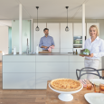 Ostrovná kuchyňa páru je štylizovaná zhora až nadol. Puristické biele čelá vyžarujú príjemný pokoj, výrazná pracovná doska, ktorá je tvorená z ocele valcovanej za tepla zvarená do jedného kusu prináša do priestoru elegantnú dynamiku. Obaja milujú varenie z čerstvých regionálnych potravín. Marco sa však okolo sporáka točí viac. Miluje dokonalé postupy a funkčné riešenia nápomocné pri varení, preto usporiadanie kuchynskej linky presne ladí s jeho typickými činnosťami.