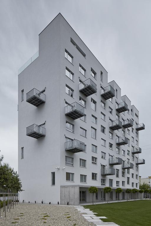 Rekonštrukcia nenápadne reaguje na svoje bezprostredné okolie a otvára bytový dom z vnútra von. Nová biela fasáda domu pôsobí jednoducho a celistvo. Výrazným prvkom fasády sú zavesené oceľové balkóny s veľkorysými rozmermi 2x2 metre tak, aby sa na ne pohodlne zmestil stôl so štyrmi stoličkami. Veľký dôraz je kladený na spoločné priestory domu. Pôvodné kočikárne v prízemí nahradila vybavenosť pre novú komunitu jeho obyvateľov. Kaviareň, fitcentrum, sauna... to všetko prepojené s priestrannou terasou orientovanou do zadného pobytového dvora. Návrh výrazne mení aj dispozície pôvodných bytov. Pomerne veľké spoločné priestory schodísk pridáva k bytom, otvára panelové konštrukcie, čo umožňuje vytvoriť nové, otvorené dispozície bytov naprieč hĺbkou celého domu. Dom pôvodne zložený z identických 2-izbových bytov po zmene ponúka pestrú paletu 2-, 3- a 4-izbových bytov. Najvyšší štandard majú dva novo pridané rozľahlé byty umiestnené v strešnej nadstavbe.