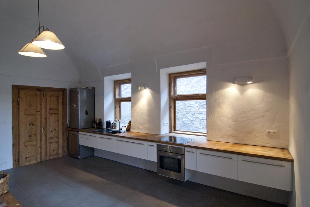 Kamenný dom z prelomu 17. a 18. storočia, ktorý patril pernikárovi, neskôr bol obchodom s miešaným tovarom, a potom bankou, sa nachádza v zástavbe liptovskej obce tzv. cieňového typu. V roku 2006 ho získali noví majitelia s úmyslom adaptovať stavbu na rekreačné účely. Keďže jeden zo stavebníkov (mladý pár) je aj architektom, určovali si prestavbu sami majitelia – architekt sa stal investorom vlastnej stavby, a tak si mohol „užiť“ proces výstavby z oboch strán. Architekt sa rozhodol zachovať čo najviac charakteristických súčastí stavby, a to nielen článkov, ale aj priestorových kvalít. Nová dispozícia v maximálnej možnej miere zachováva danosti priestoru a niektoré doslova podčiarkuje. Všetky zásahy sú však realizované bez stopy rustikálnosti – zamerané na materiál a jeho kvalitu. Murovaná pec, staré okenice, osadenie kovového prekrytia vetráku sú opravené a zakonzervované bez snahy pridávať im „starobylú atmosféru“. Všetky nové časti (dvere, okná) sú navrhnuté tak, aby súzneli s atmosférou domu, ale aby bolo ich zjavné ukotvenie v súčasnosti. Napríklad dvere do kúpeľní v prvom pláne imitujú dedinské jednoduché dvere, ale ich dizajn je jednoznačne súčasný a technicky presný. Nový detail (spoj steny s podlahou, dvere, okná, miesta stretnutí materiálov, zariaďovacie prvky) je doslova pointovaný a postavený na účinky, ktoré prináša jeho nenápadná precíznosť, vychádzajúca z funkčnosti, vyznenia materiálu a stavebných princípov (napríklad zasklenie svetlíkov nad kúpeľňou). Vďaka takémuto prístupu sú podlaha (zrepasované storočné staré dosky aj so svojimi nerovnosťami), stena (vždy viditeľná a hrboľatá, prechádzajúca do jednoduchej dedinskej klenby) oceľová okenica (ponechaná bez rustikalizujúceho náteru) atď. posunuté do vyššej roviny – sú výpoveďou o názore k materiálu, remeslu a tradícií bývania.