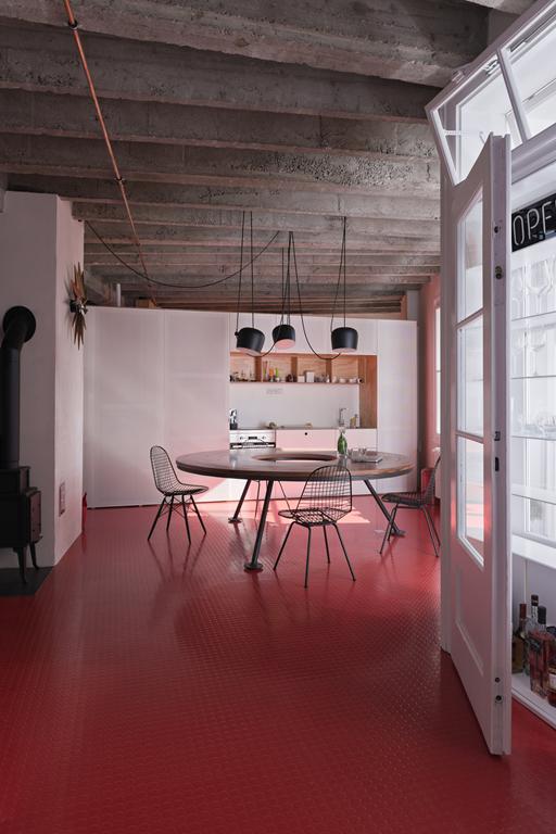 Je to otvorený priestor, ktorý v sebe kombinuje časti starej a novej dispozície, stavia ich vedľa seba, spája ich, dáva im novú funkčnosť. Očistené materiály pôvodných konštrukcií a oživené podlahy kombinuje s jednoduchými funkčnými nábytkami, ktoré definujú jeho novú dispozíciu. Vo svojej podstate je návrh architektov veľmi jednoduchý.
