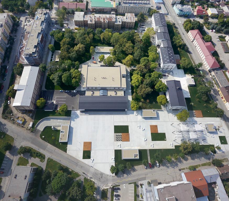 Pôvodne uzavretý, introvertný, pre bežného človeka neprístupný vojenský komplex sa zmenil na otvorený verejný mestský priestor, skladajúci sa z dvoch vzájomne sa doplňujúcich prostredí – parku a nového námestia.