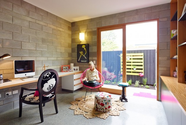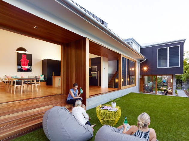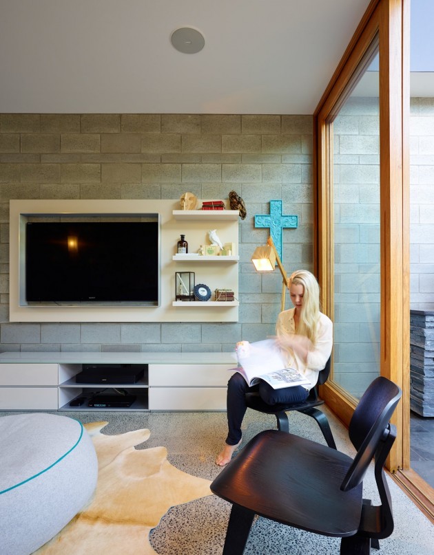 "Kľúčová filozofia dizajnu Shaun Lockyer Architects sa koncentruje na svetlo, funkčnosť a vytvorenie atmosférického životného priestoru. Tieto tri prvky pokladajú základy pre vznik krásneho rodinného domu, ktorý si kladie za cieľ uľahčenie šťastného rodinného života. Terasový dom sa zaoberá myšlienkou skĺbenia krajiny vytvorením vyvýšeného nádvoria na strane presvetlenej povojnovej chaty. Dom vyjadruje hmatovú paletu materiálov, vrátane muriva, betónu a dreva naproti pôvodnej chate." - Shaun Lockyer Architects