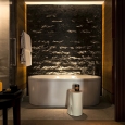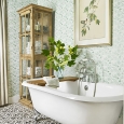 Závan exotiky môžete vniesť aj do kúpeľne. Stačí, ak sa budete držať zásad dizajnovania ako v prípade koloniálnej obývačky. Základ kúpeľne postavte na masívnom solitéri či už v podobe skrinky pod umývadlo alebo zaujímavej konzoly. Dekorovanie prenechajte zlatým akcentom prítomných na doplnkoch, zrkadlách či obkladoch. Tie môžu niesť zaujímavé vzory typické pre východné, ale aj španielske krajiny a stať sa hlavným zdrojom exotiky v kúpeľni. Zvyšok doplňte bielym keramickým sanitárnym zariadením. Pozornosť pokojne upriamte na batérie, ktoré vyzdvihnú šarm tohto dizajnu.