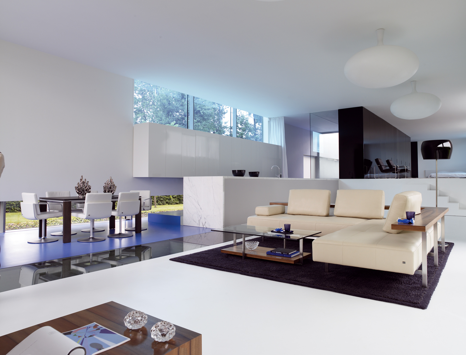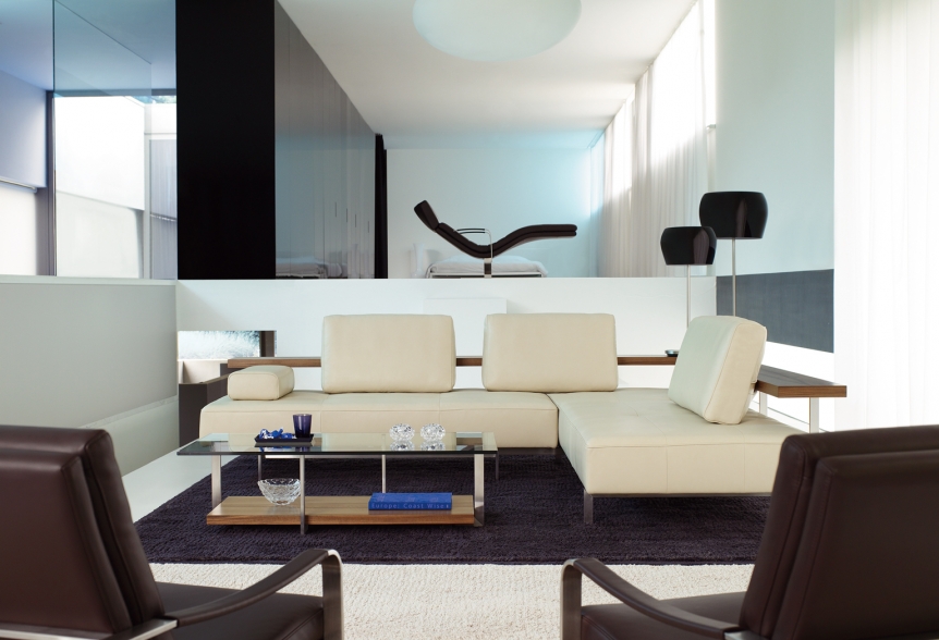Biela a čierna. Monochromatická. Bezfarebná. Nekonečne otvorená novým priestorovým variáciám, komplementárnym prvkom v rôznych farbách a vyhotoveniach, novému duchu pri zachovaní pôvodných „stavebných základov“. Fascinujúco žiarivý kontrast, nekonečný boj a zároveň súžitie dvoch brehov, medzi ktorými stojí celý svet jedného priestoru. Bipolarita srdca domácnosti – obývačky.
